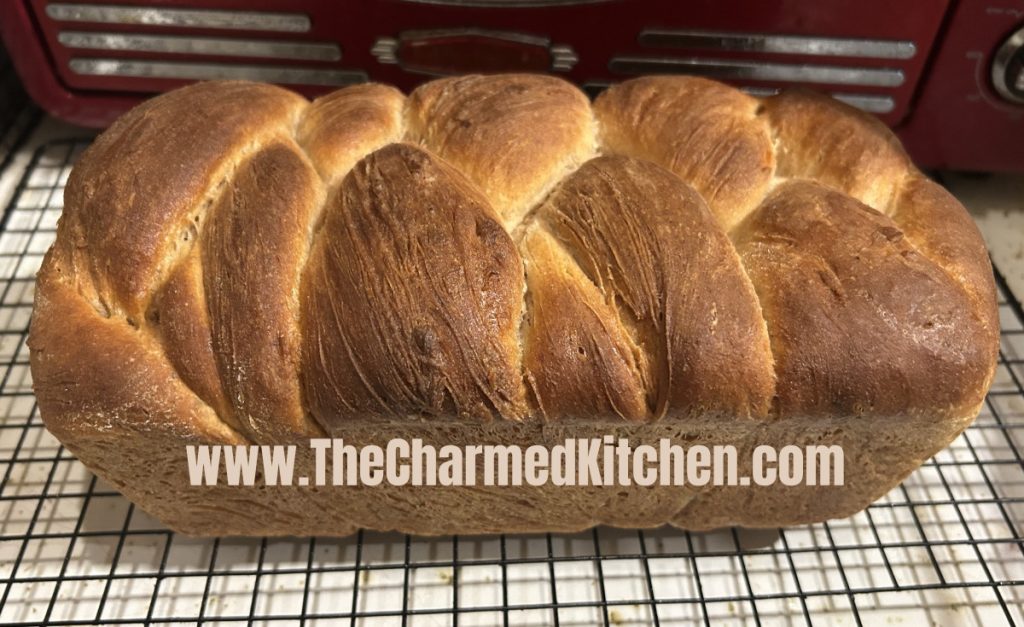 Place 2 c. flour, yeast and salt in a medium bowl. Heat together water, honey and oil until warm (120-130 degrees) Add water mixture to spelt mixture and beat on low speed of electric mixer for 30 seconds, or until moistened. Add egg and beat on high 3 minutes. Stir in enough spelt to make a soft dough. Cover bowl with towel and allow to rise until doubled, about 1 hour. Grease a 9×5 inch loaf pan and set aside. Use a rubber scraper to transfer dough to a lightly floured surface. Divide dough into three pieces and roll each piece into a 12-inch rope. Braid the ropes together, pinch ends to seal. Place into prepared pan. Cover and let rise until doubled, another hour. Bake in a pre-heated 375 degree oven for 25-30 minutes. Cover top with foil during last 10 minutes of baking. Bread is done when it sounds hollow when lightly tapped. Remove from pan and cool on wire rack. Makes 1 loaf.