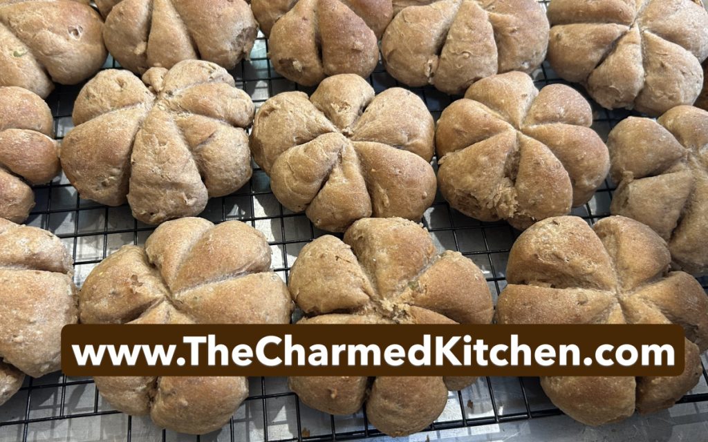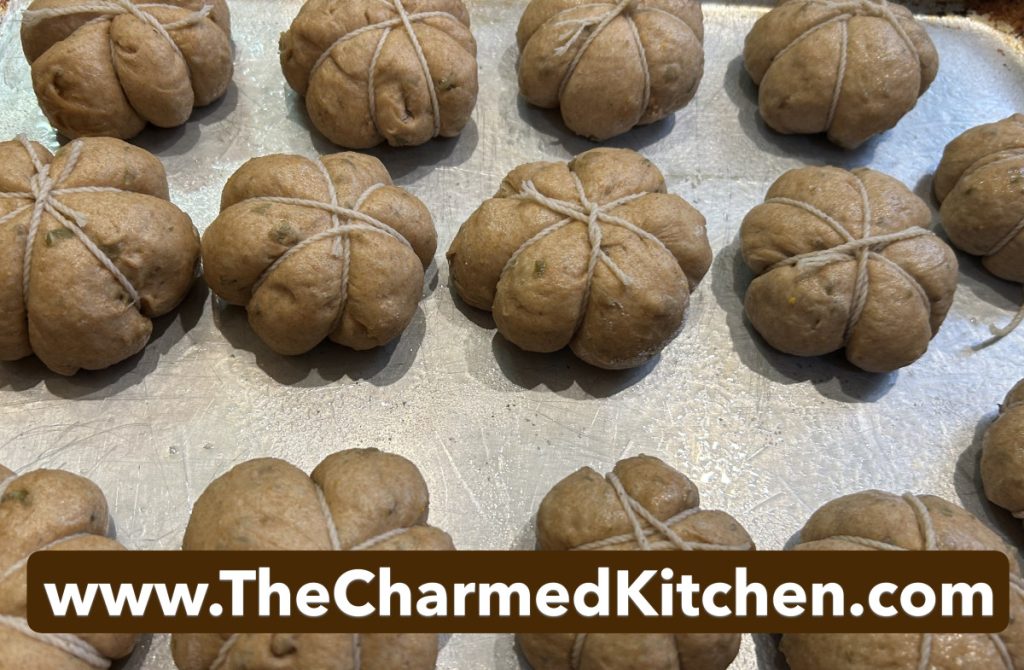 This is one of those little things you can do to make a dish special. I was making rolls for a diner with friends. I wanted something to fit the Halloween theme so I used twine to help the rolls rise and look like little pumpkins. I used spelt flour because I like it. I also did NOT use pumpkin pie seasoning. I just added a bit of grated orange zest and chopped up pumpkin seeds. They were so simple to make.